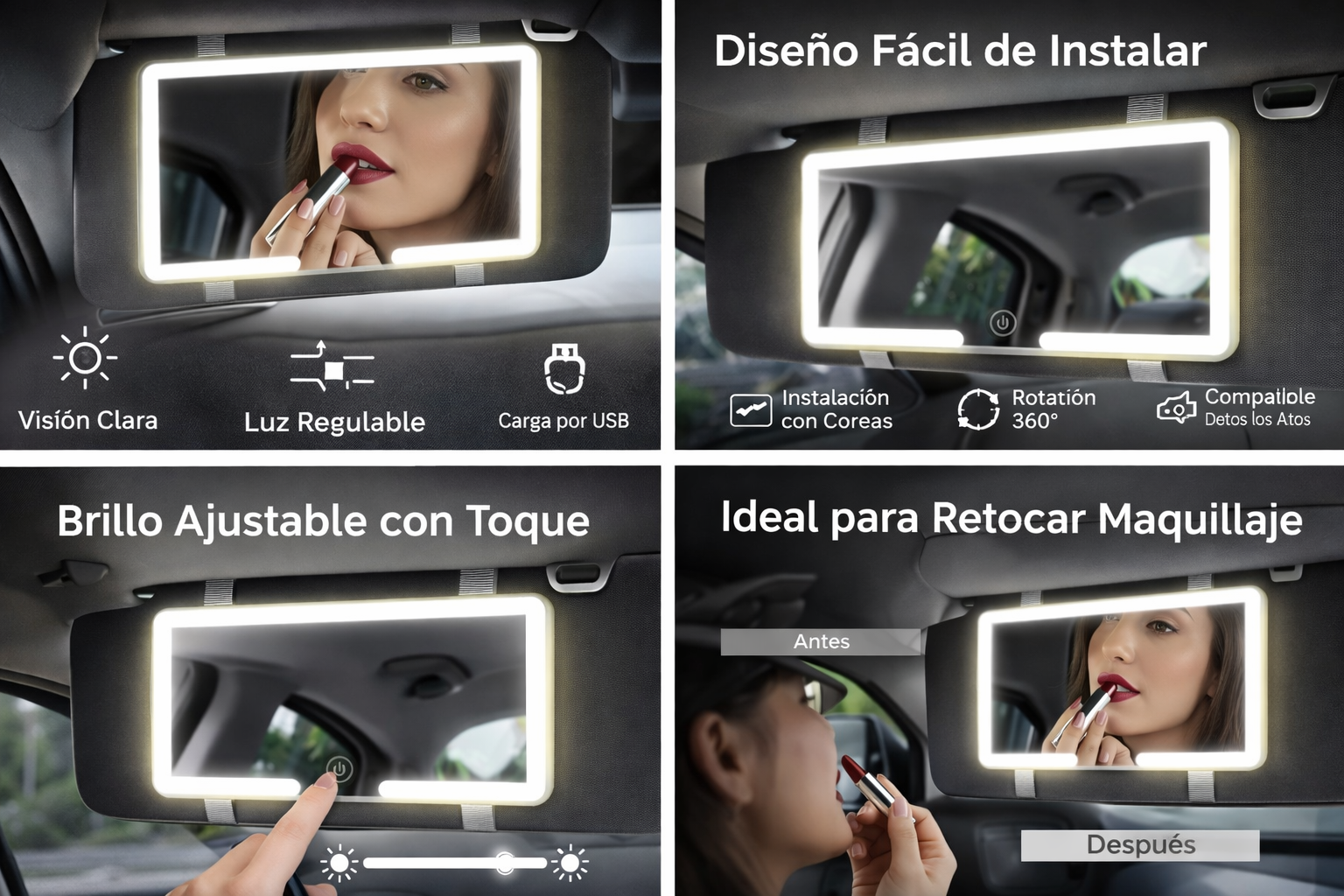 Espejo led recargable para auto